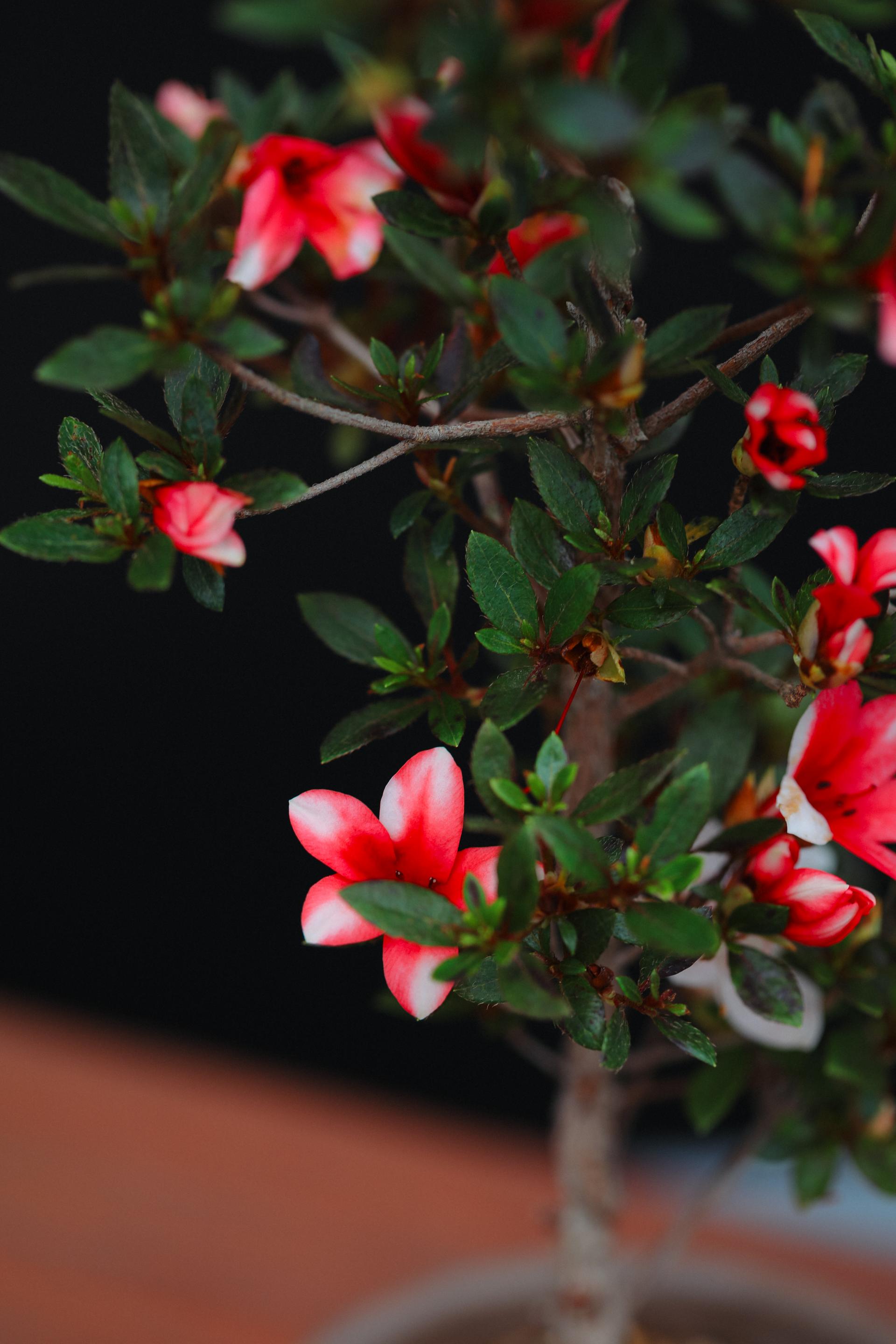 빨강 + 흰색이 꽃마다 다르게 나오는 왜철쭉 일의환입니다.