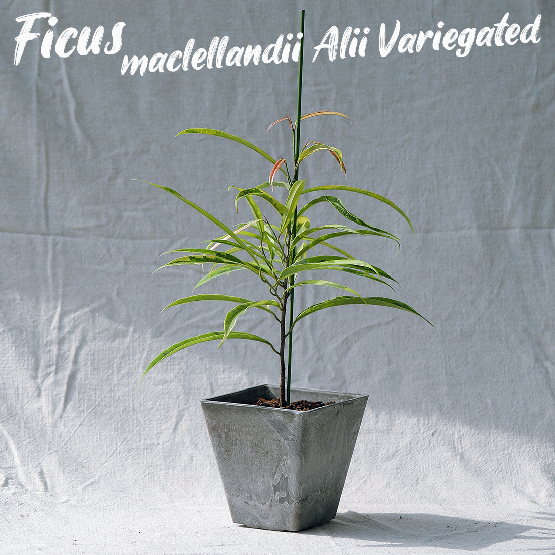 Ficus maclellandii ‘Alii Variegated’ + Brown marble square pot