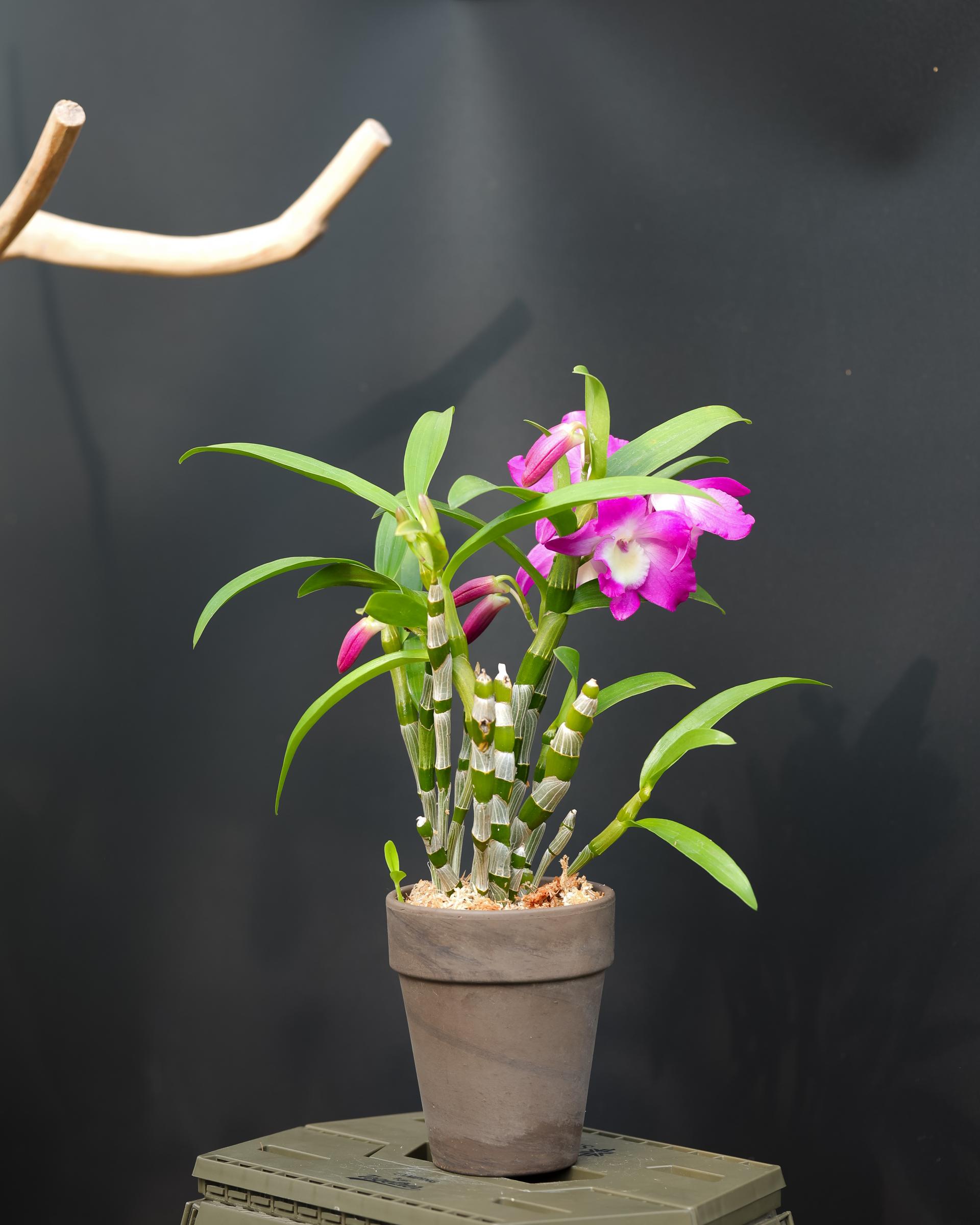 손바닥만한 큼지막한 꽃을 피우는 대형종 덴드로비움 핑크sp.입니다.