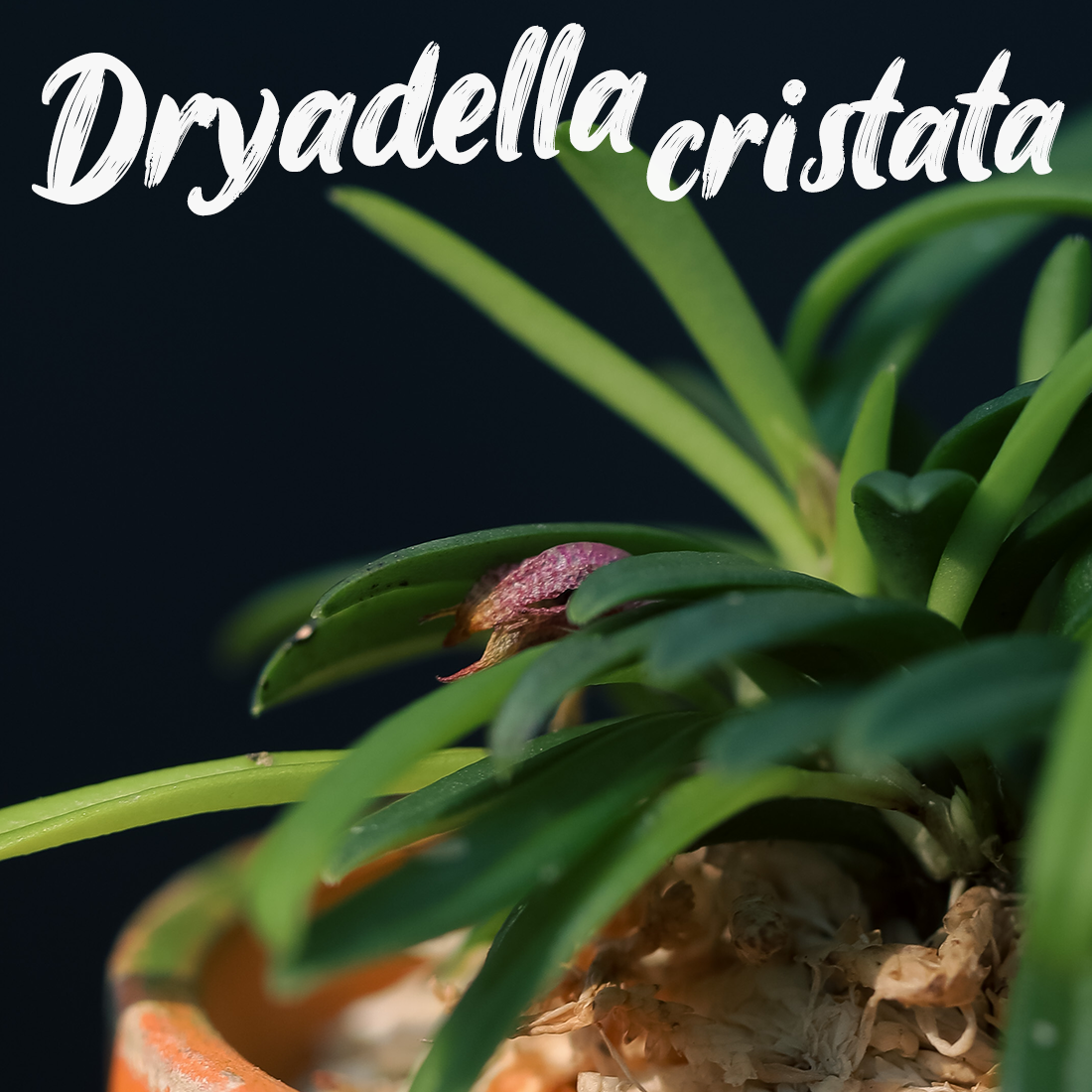 와인색의 작은 꽃을 피우는 초소형 난초 드라이아델라 크리스타타입니다.