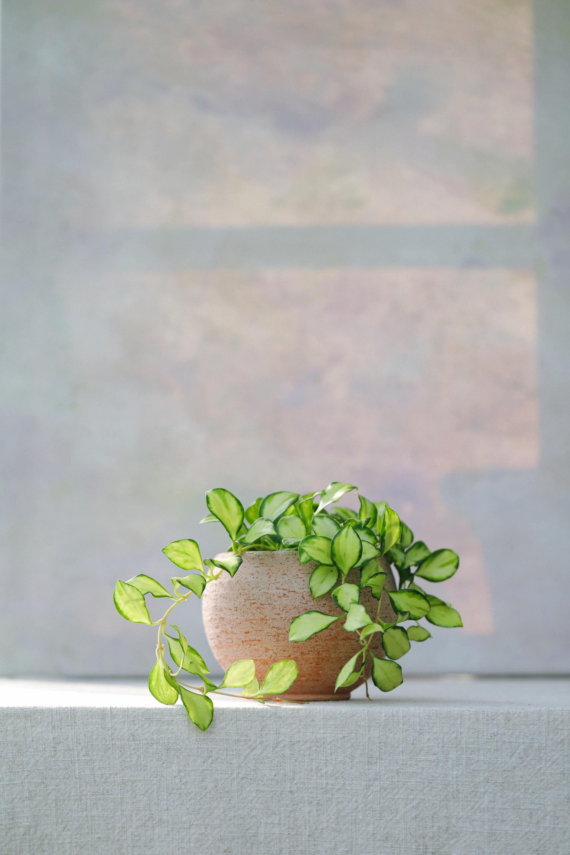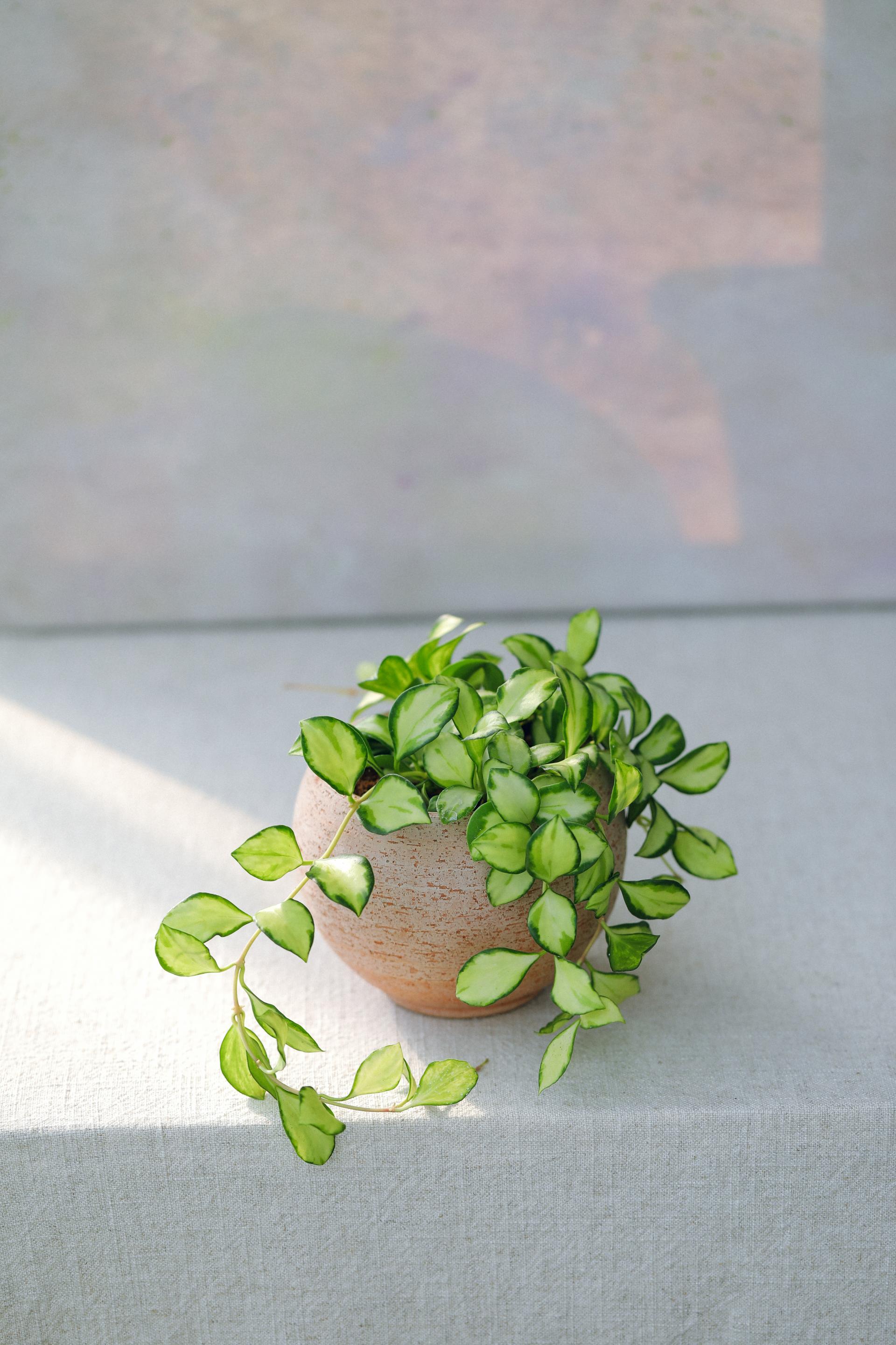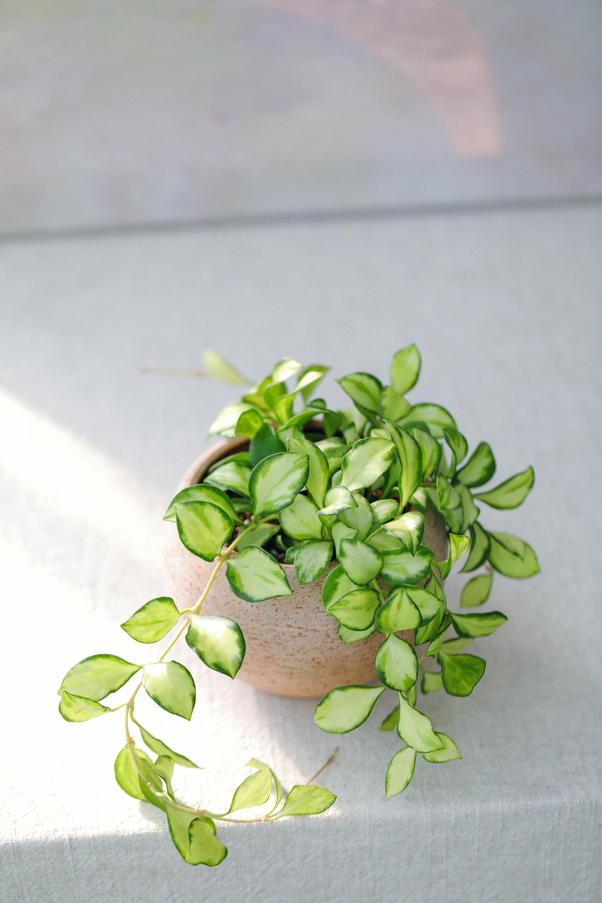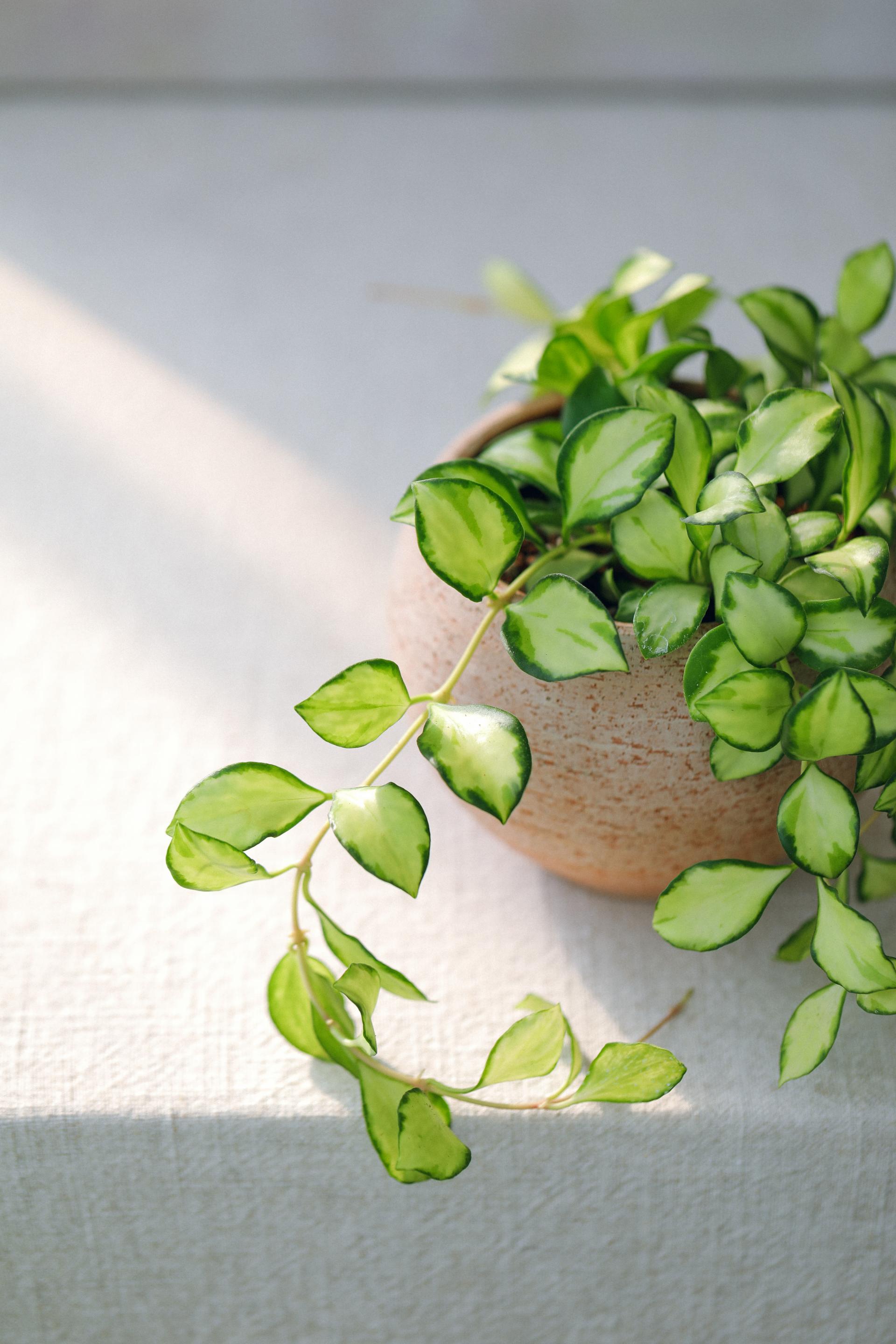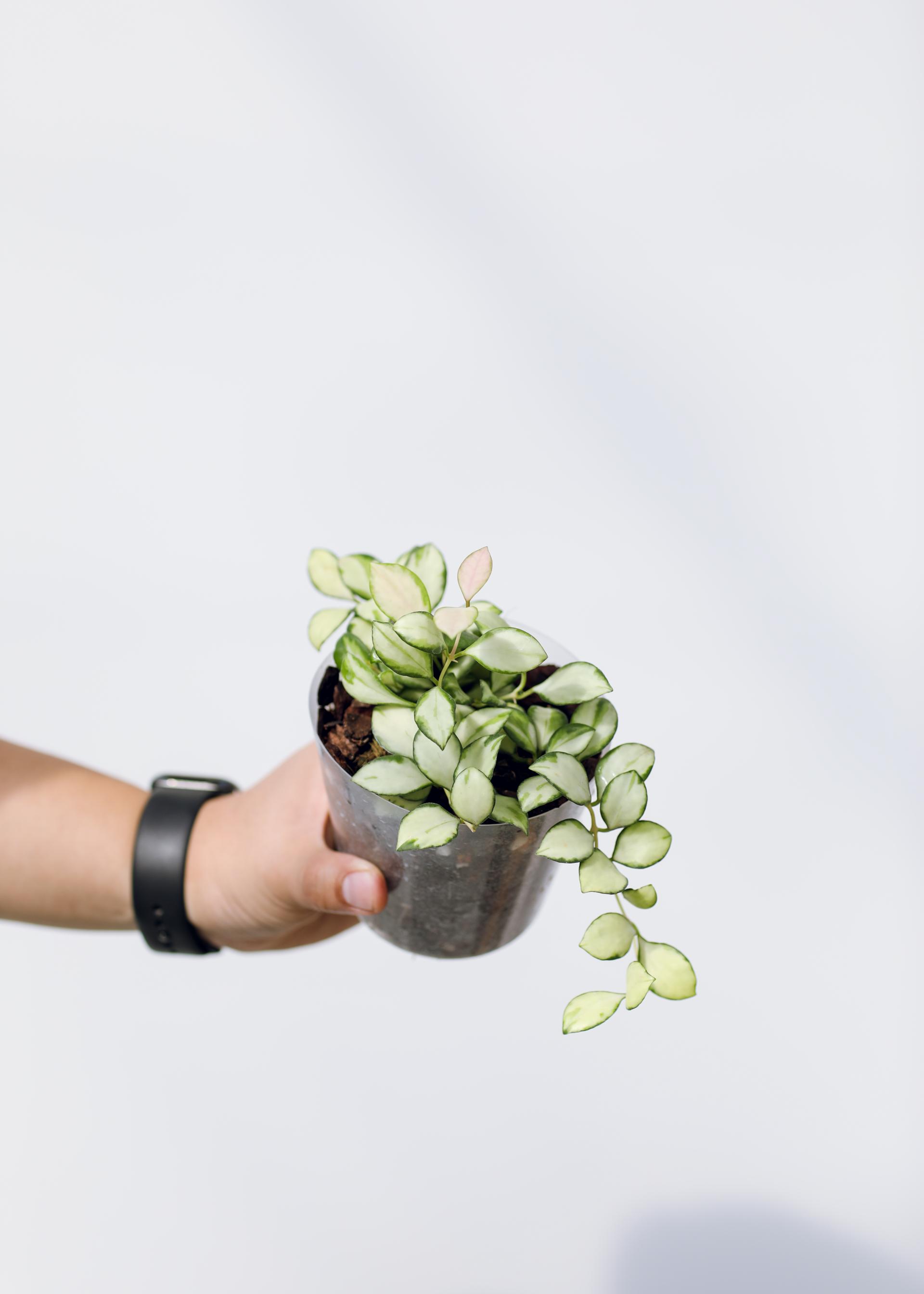 작고 동글동글한 잎이 귀여운 호야로 알사탕처럼 생긴 독특한 별꽃을 피워요.