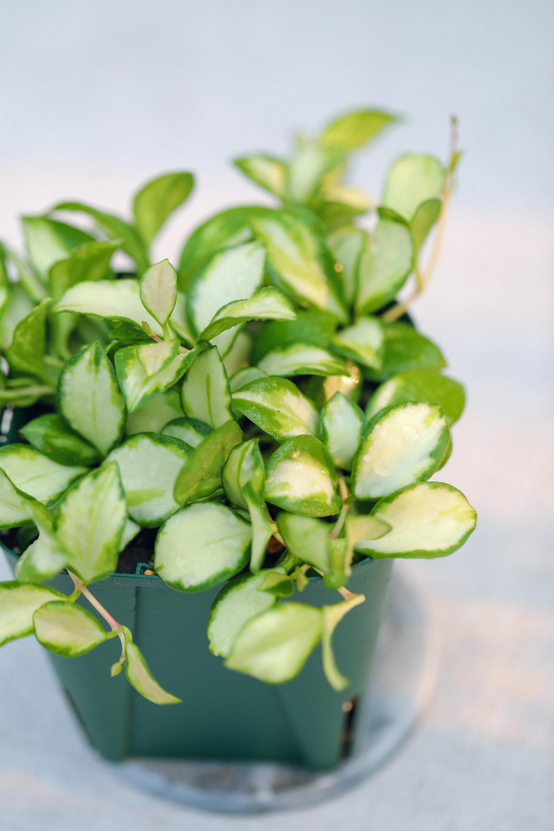 잎을 가득채우는 크림색 무늬가 멋진 호야 휴스켈리아나 무늬종입니다.