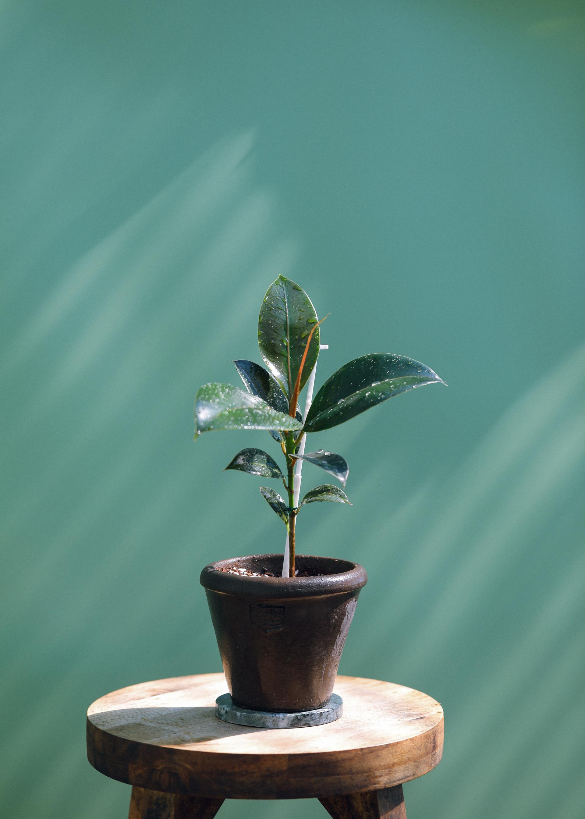짙은 암녹색 잎이 차분한 느낌을 주는 멜라니 고무나무입니다.