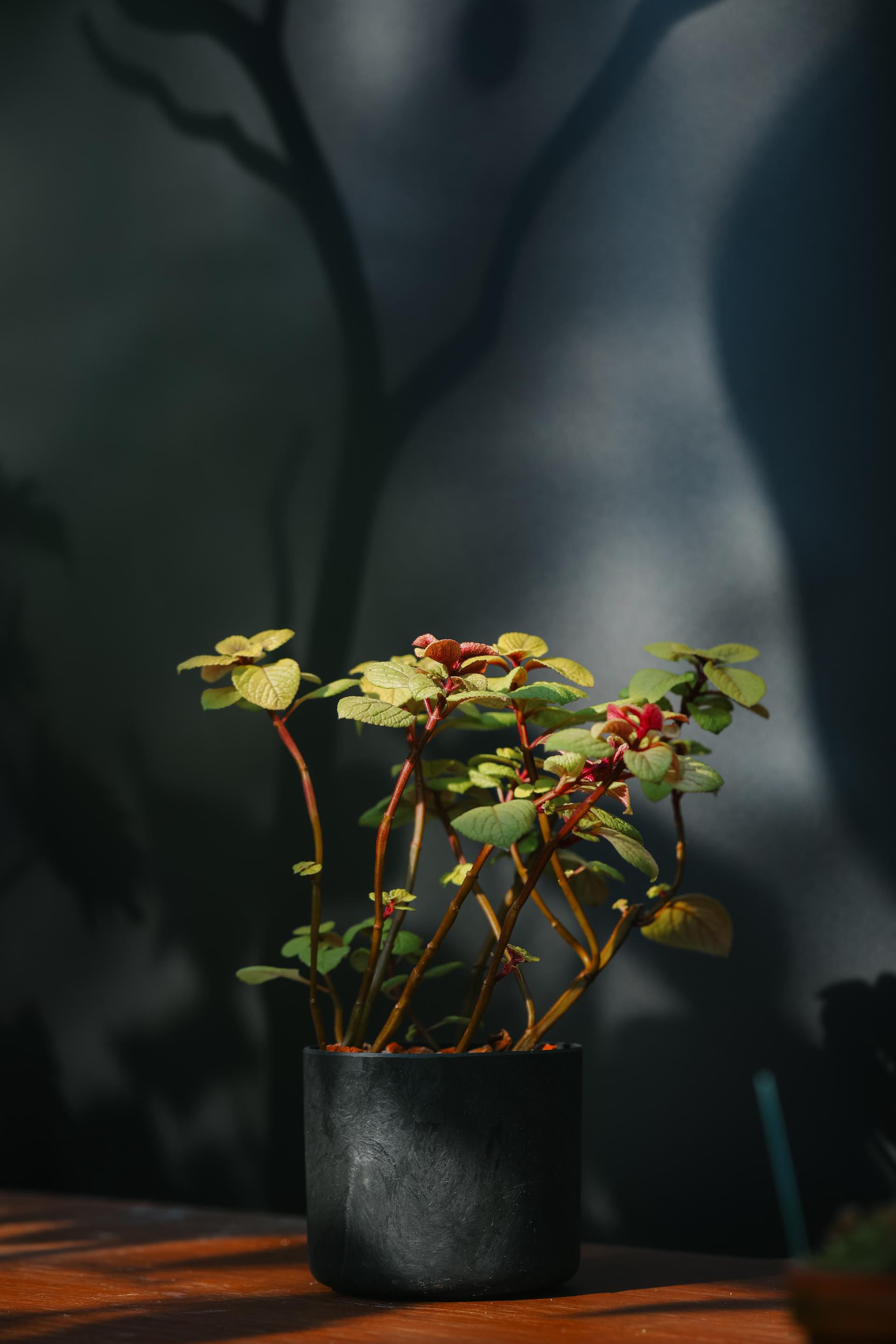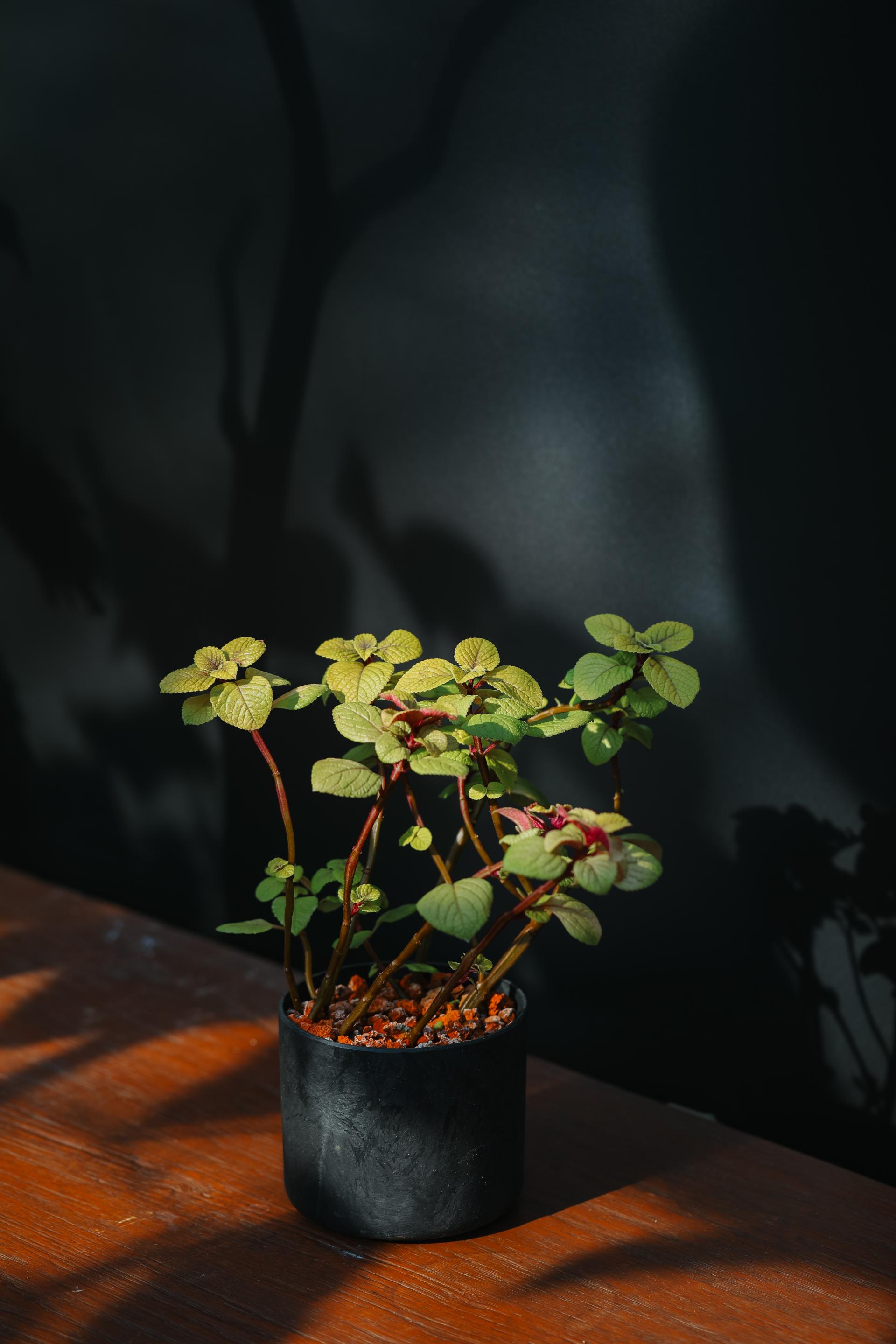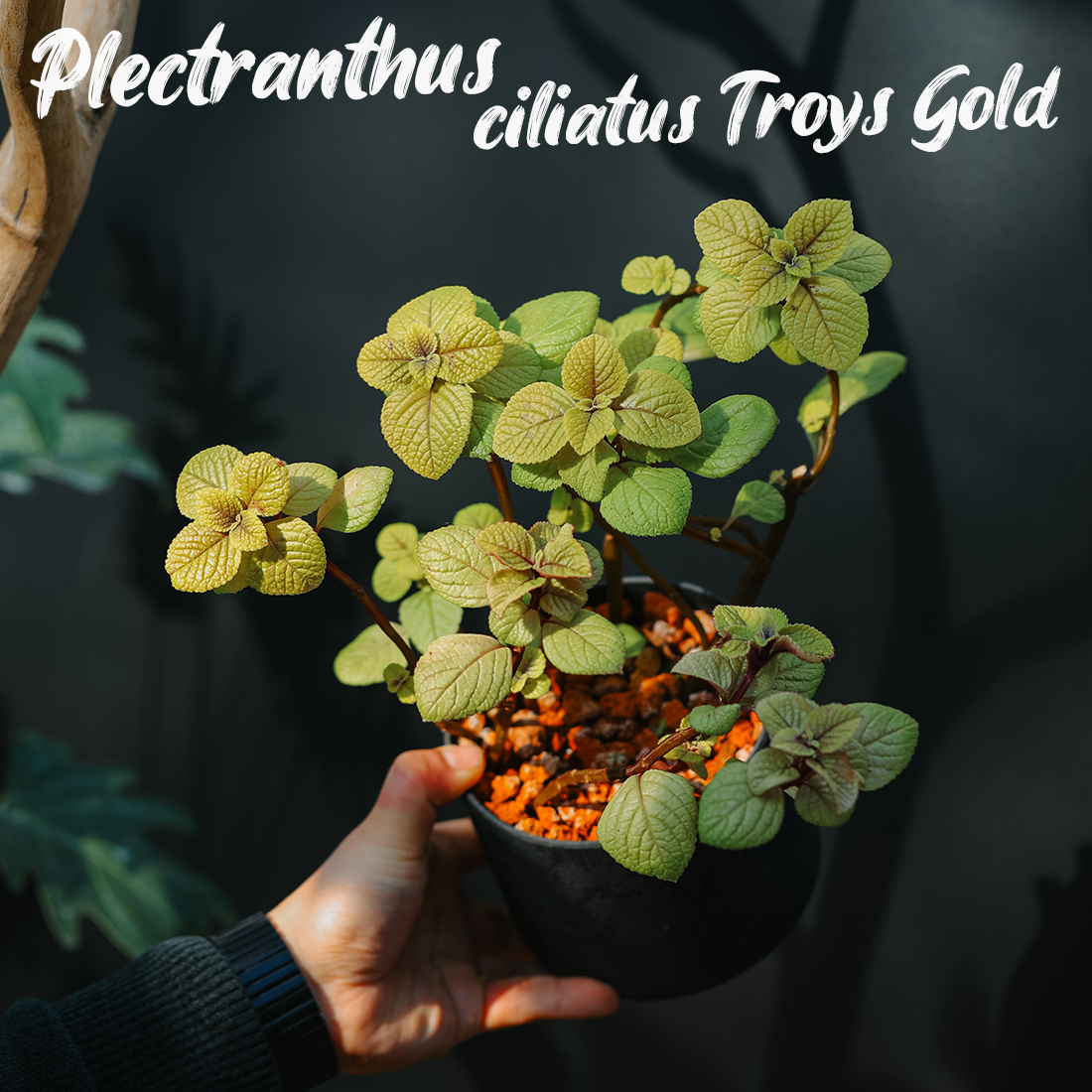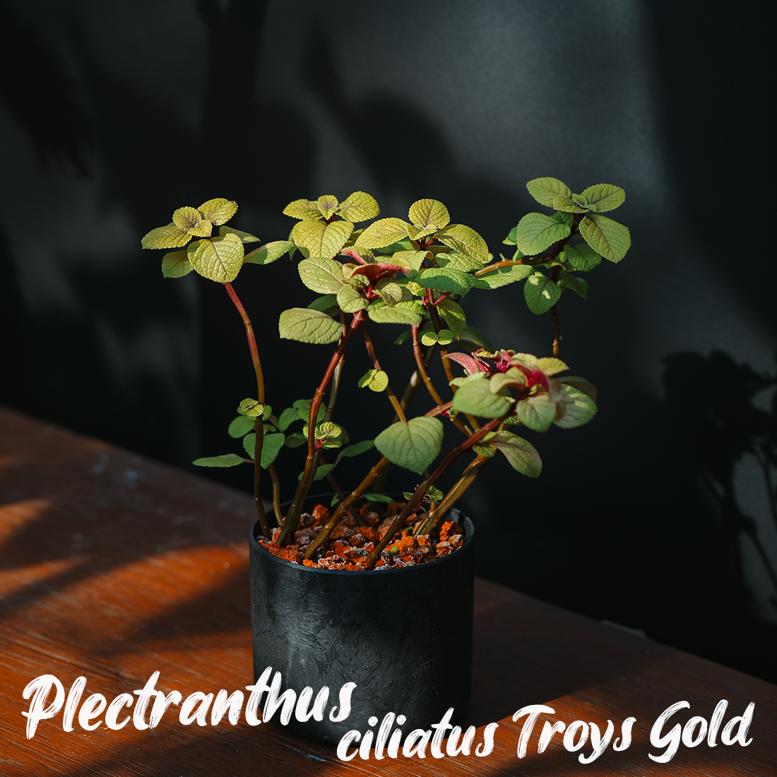 Plectranthus ciliatus 'Troy's Gold' + Black cylinder pot